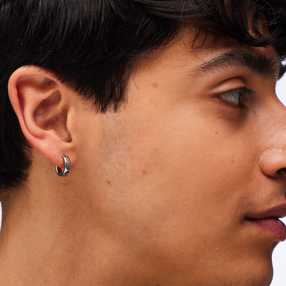 Moderna muška minđuša od nerđajućeg čelika, sa elegantnim i čistim linijama. Idealan dodatak za savremenog muškarca koji ceni jednostavan, ali upečatljiv stil.