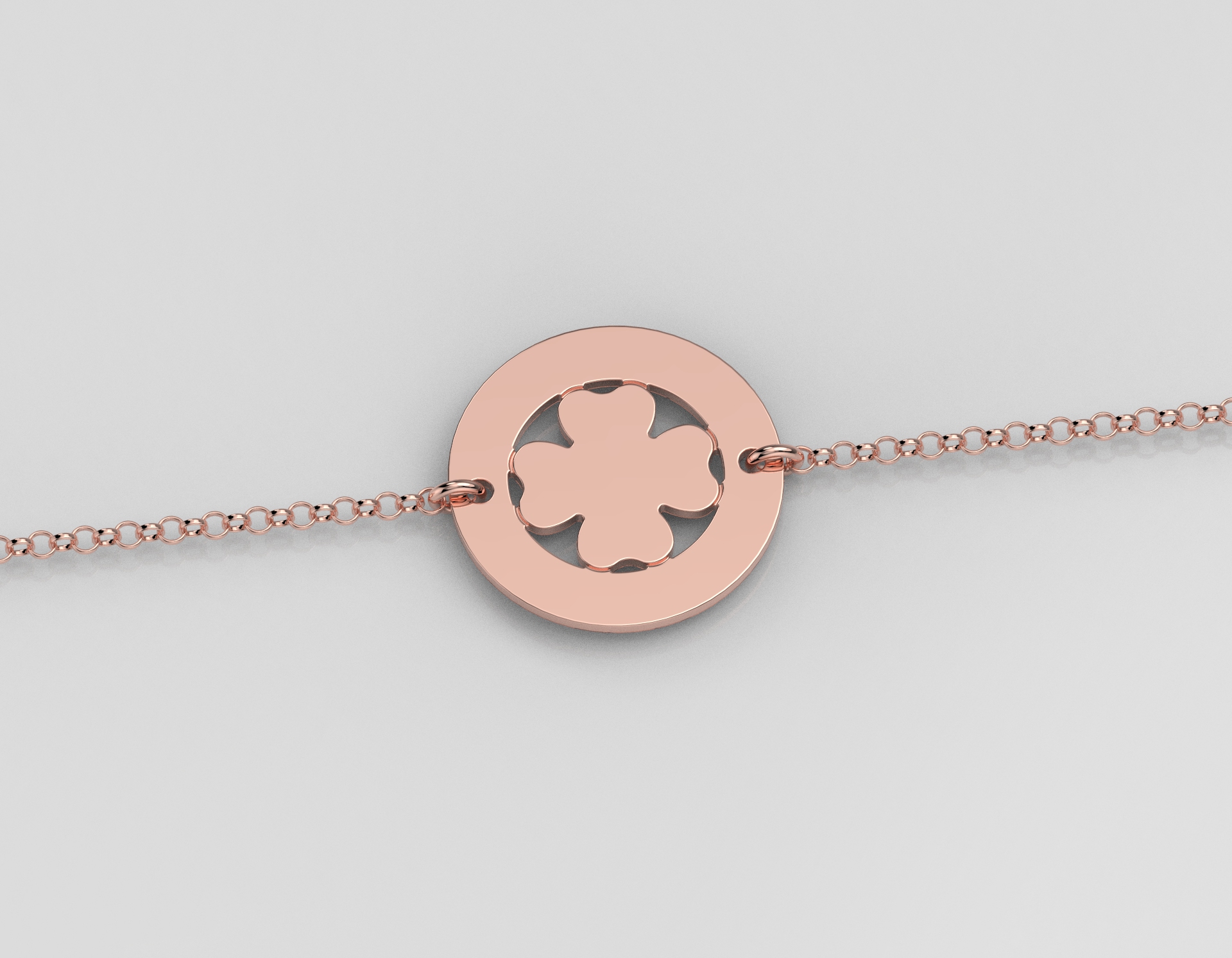 Narukvica puna detelina u supljem krugu od roze zlata N-LA-003-R