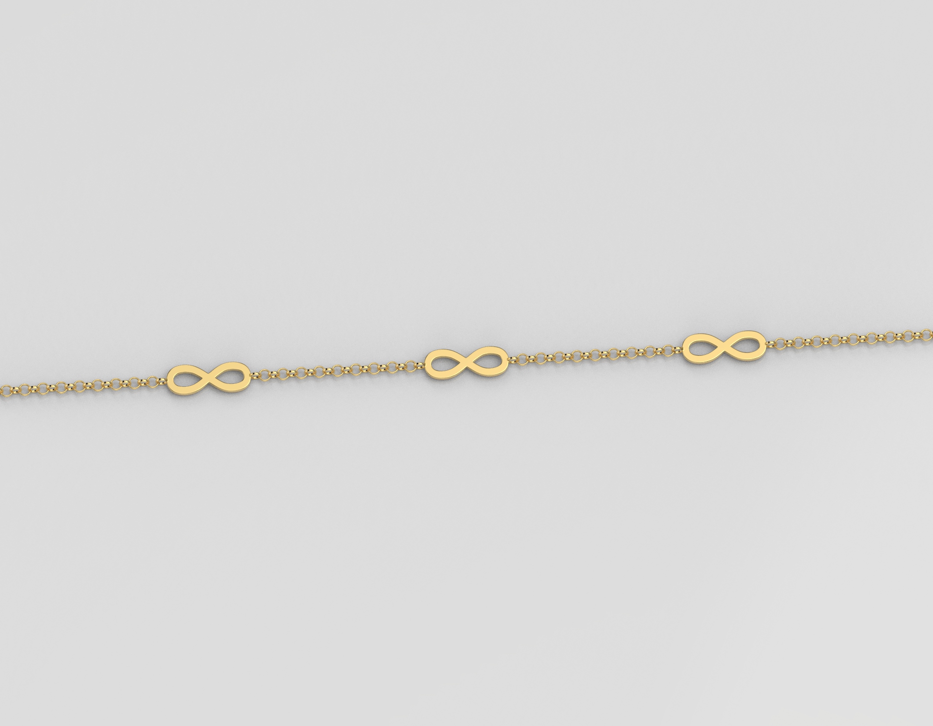 Narukvica Triple Infinity izrađena od žutog, belog ili roze zlata donosi jedinstveni dizajn sa tri simbola beskonačnosti koji simbolizuju trajnu povezanost, ljubav i harmoniju. Savršen izbor za posebne trenutke, elegantan poklon ili sofisticirani detalj koji će obogatiti vaš stil.