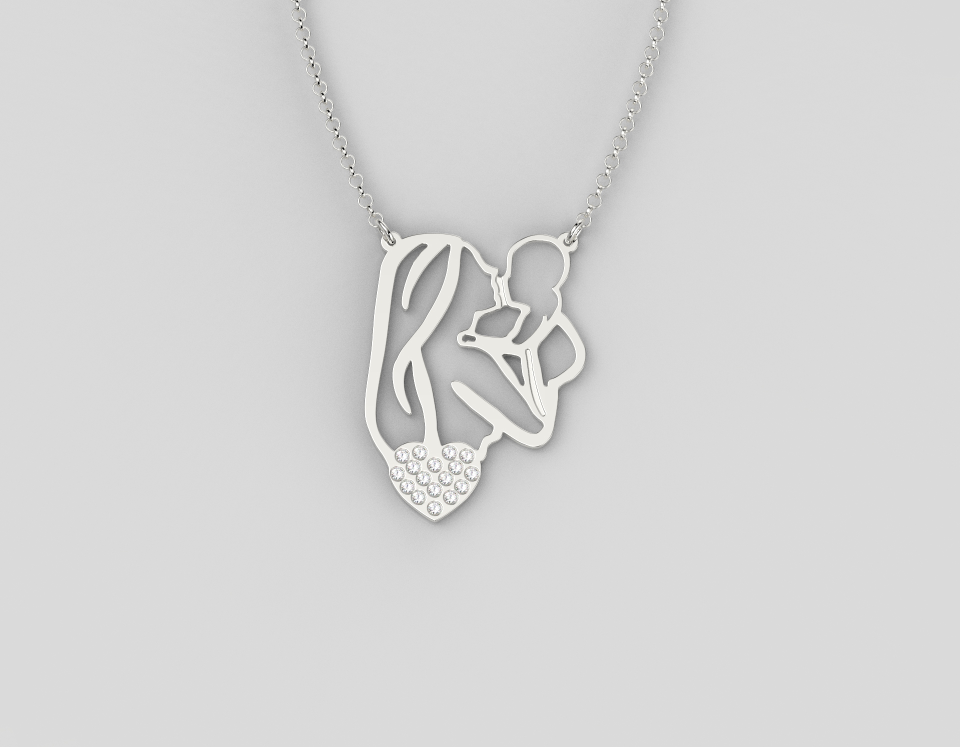 Ogrlica „Beba u majčinom naručju“ je simbol ljubavi i zaštite, prikazujući emotivnu vezu između majke i deteta. Dizajnirana u tri vrste zlata – žutom, belom i roze – i ukrašena cirkonom ili brilijantima, ova ogrlica je savršen poklon za majke koje žele da čuvaju dragocene trenutke sa svojom bebom. Nježan i emotivan dizajn čini ovu ogrlicu idealnim izborom za posebne prilike, dodajući simboličnu vrednost i šarm u svakodnevni stil.