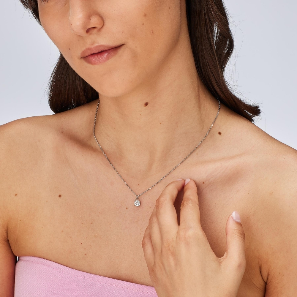 Sofisticirana ogrlica u beloj boji sa prozirnim cirkonima. Savršen detalj za večernje izlaske ili svečane prilike. Izrađena od hirurškog čelika, nudi luksuzan izgled i visoku kvalitetu.
