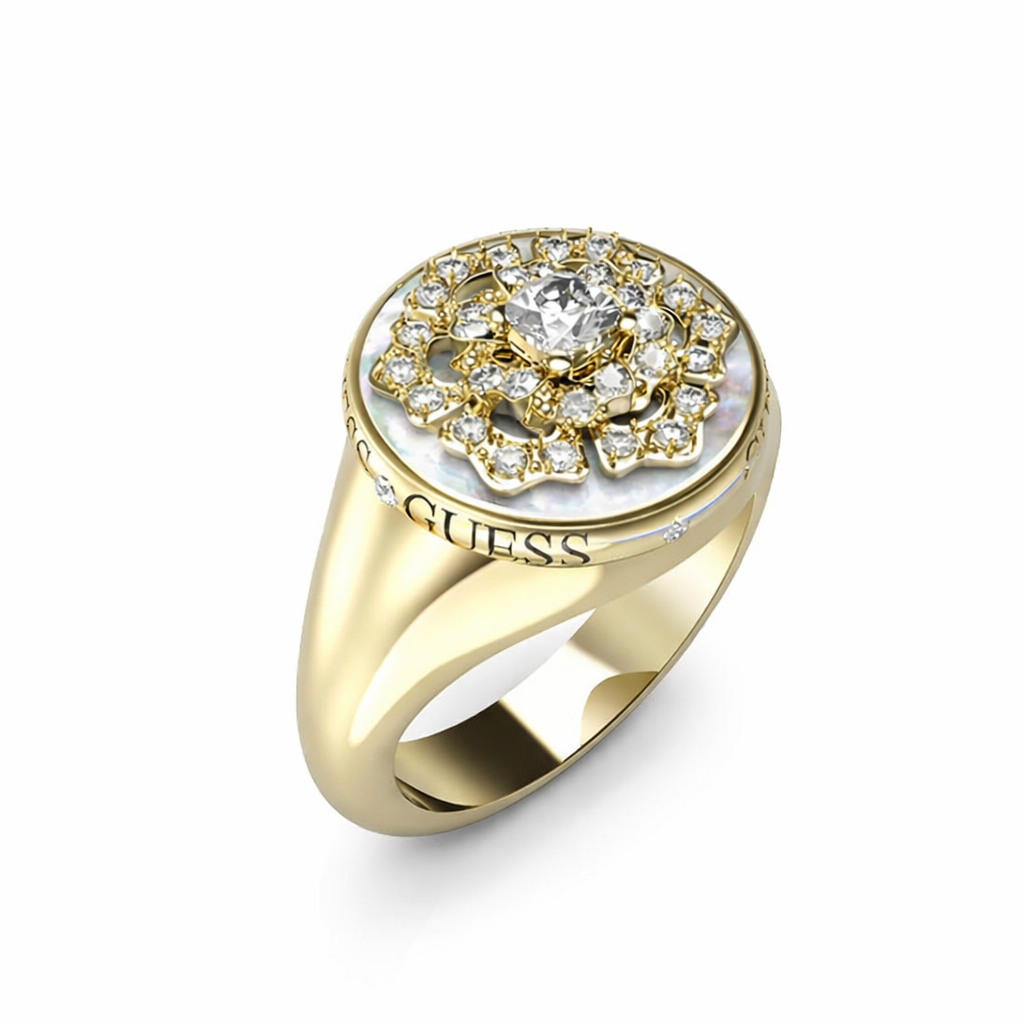 Elegantni ženski prsten Guess JUBR04550JWYG52 izrađen je u zlatnoj nijansi sa prepoznatljivim Guess potpisom. Moderan i ženstven, ovaj prsten ističe stil i dodaje dozu luksuza svakodnevnim i večernjim kombinacijama.