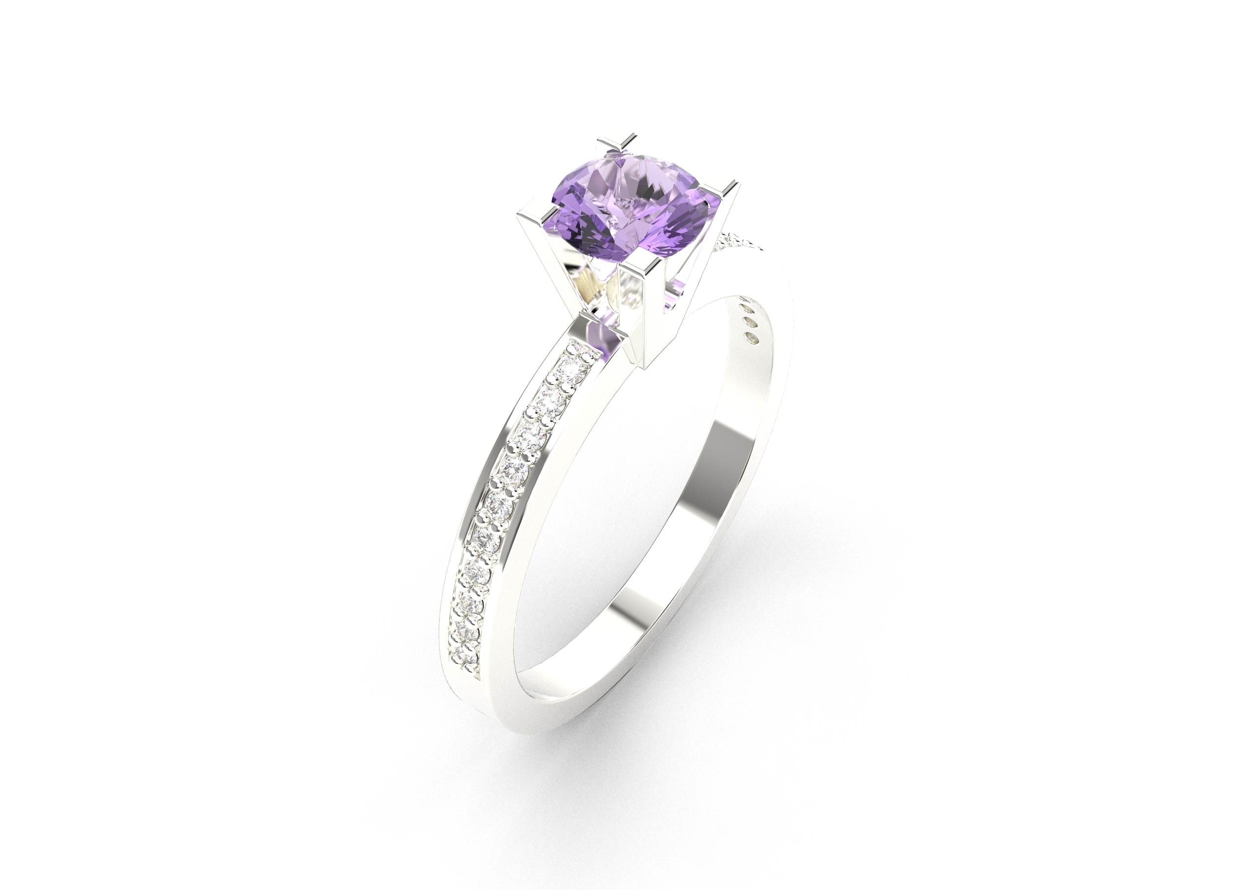 Prsten model 13 od belog zlata sa ametistom i cirkonima