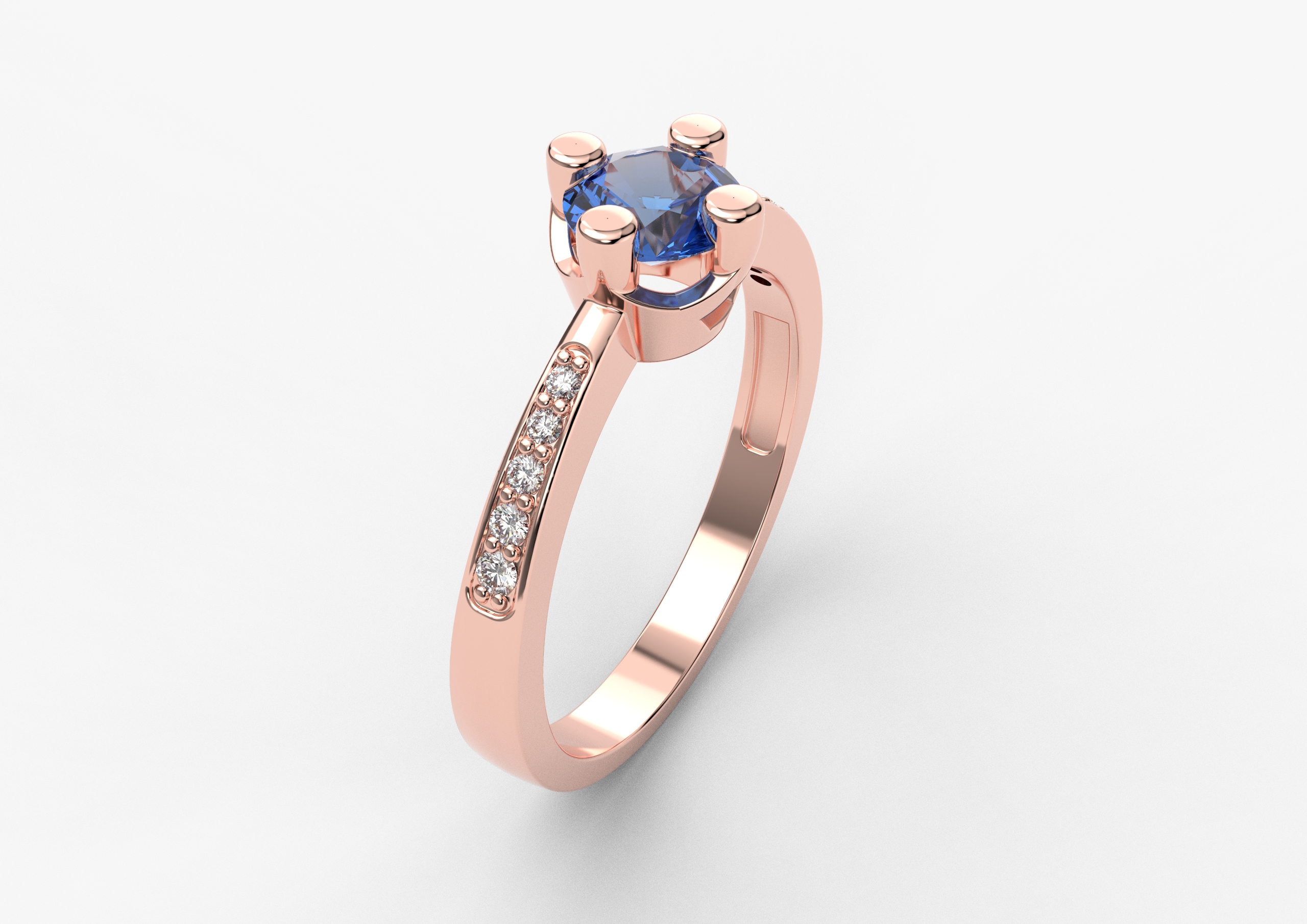 Prsten model 28 od roze zlata sa plavim topazom i brilijantima