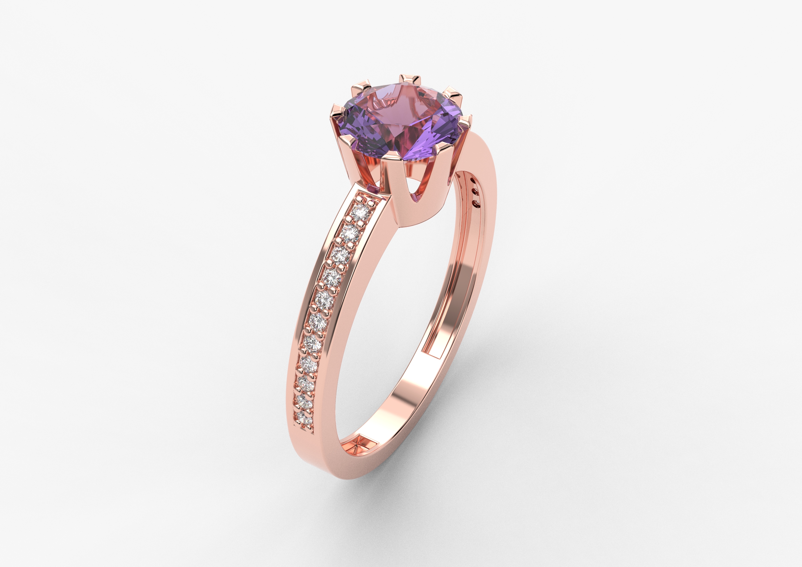 Prsten model 79 od roze zlata sa ametistom i cirkonima