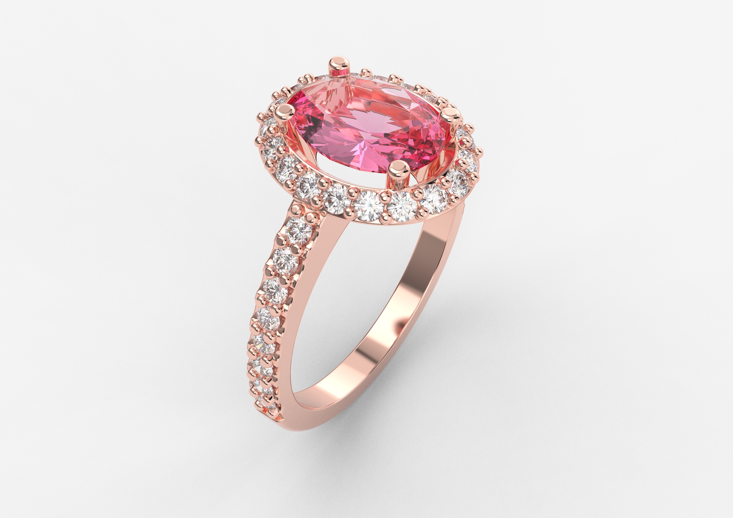 Prsten model 8 od roze zlata sa morganitom i brilijantima