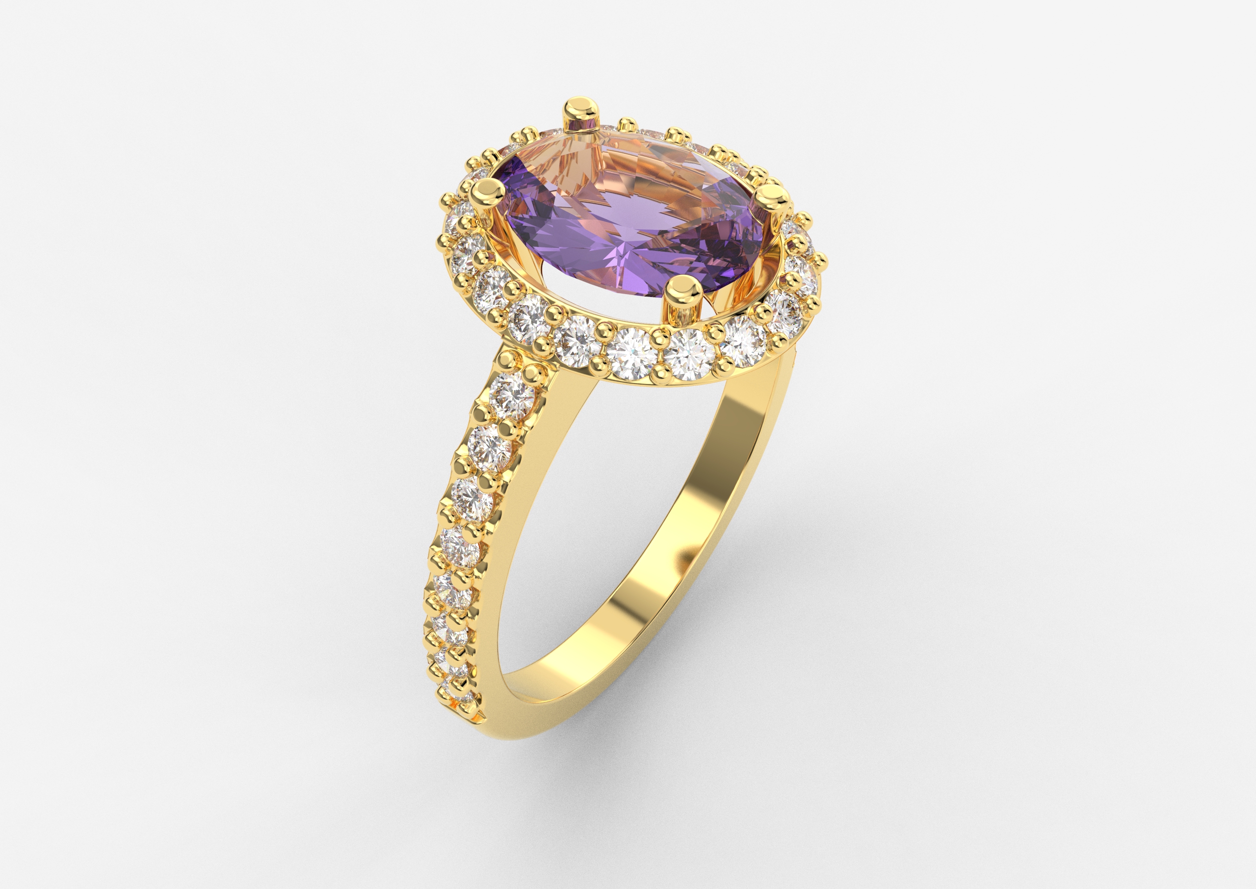 Prsten model 8 od žutog zlata sa ametistom i brilijantima