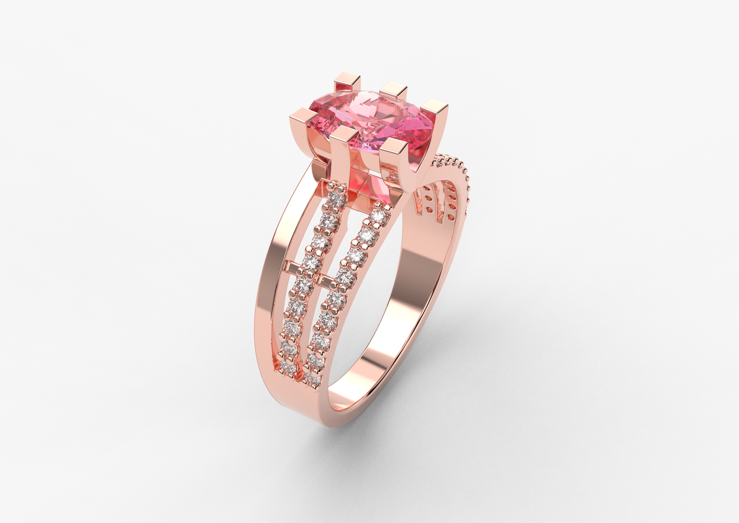 Prsten model 82 od roze zlata sa morganitom i brilijantima