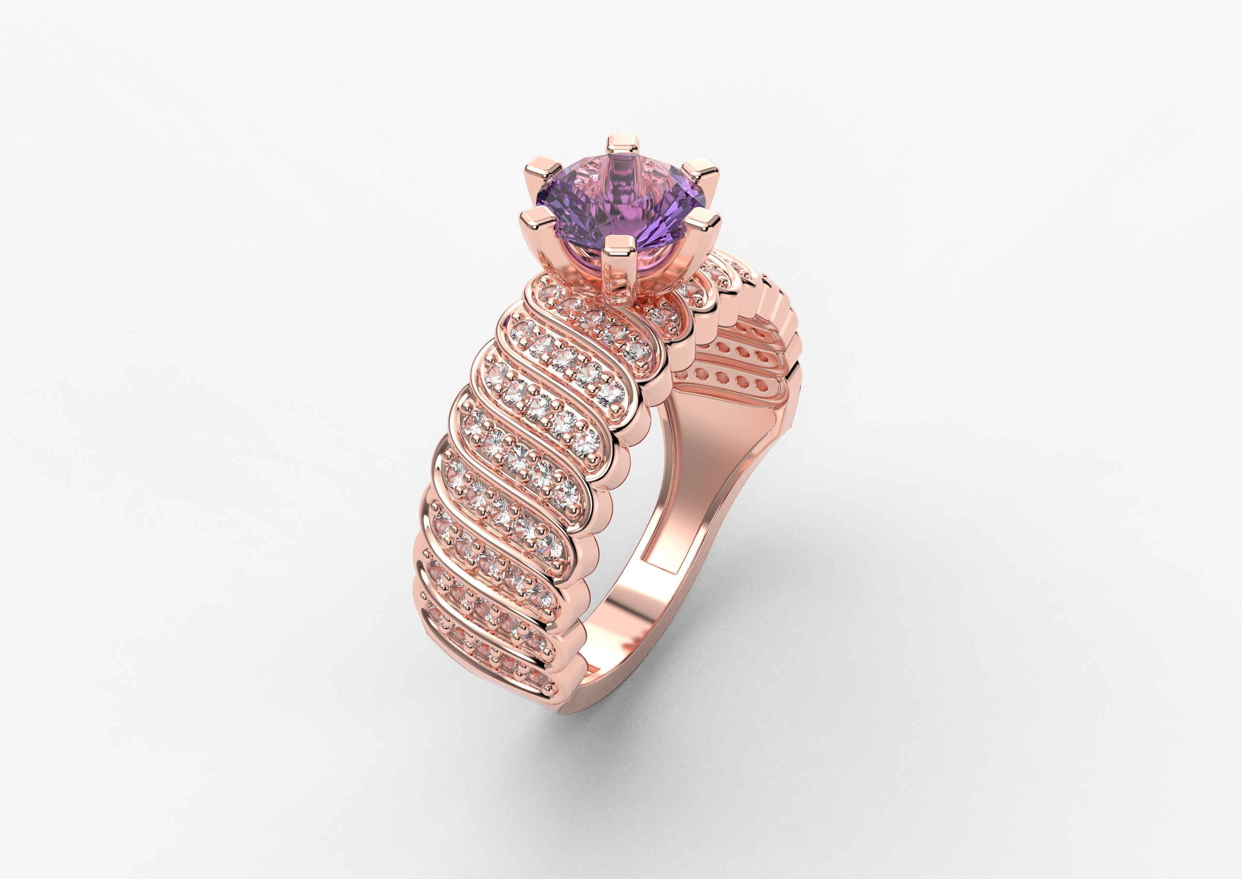 Prsten model 87 od roze zlata sa ametistom i brilijantima