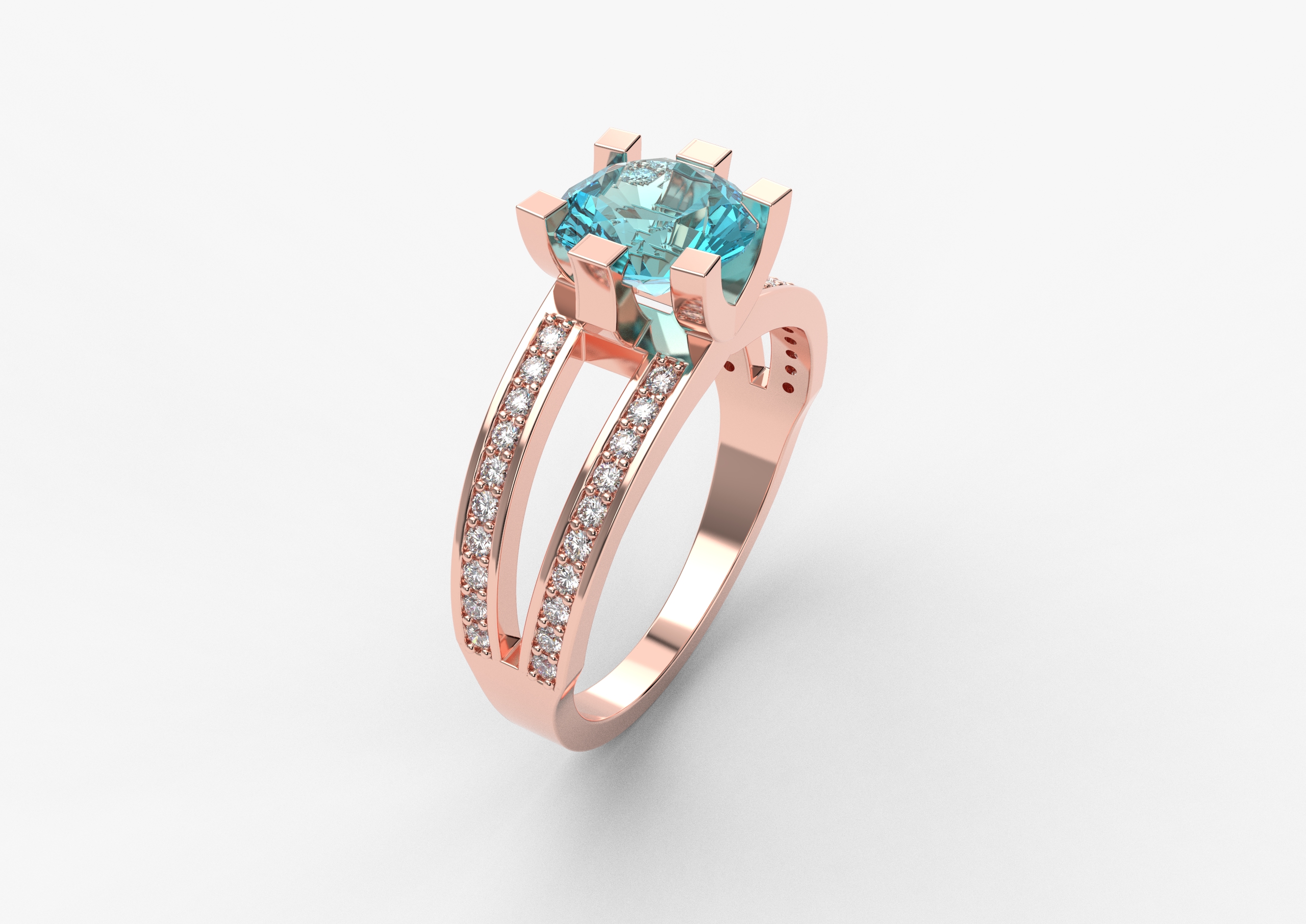 Prsten model 95 od roze zlata sa akvamarinom i brilijantima