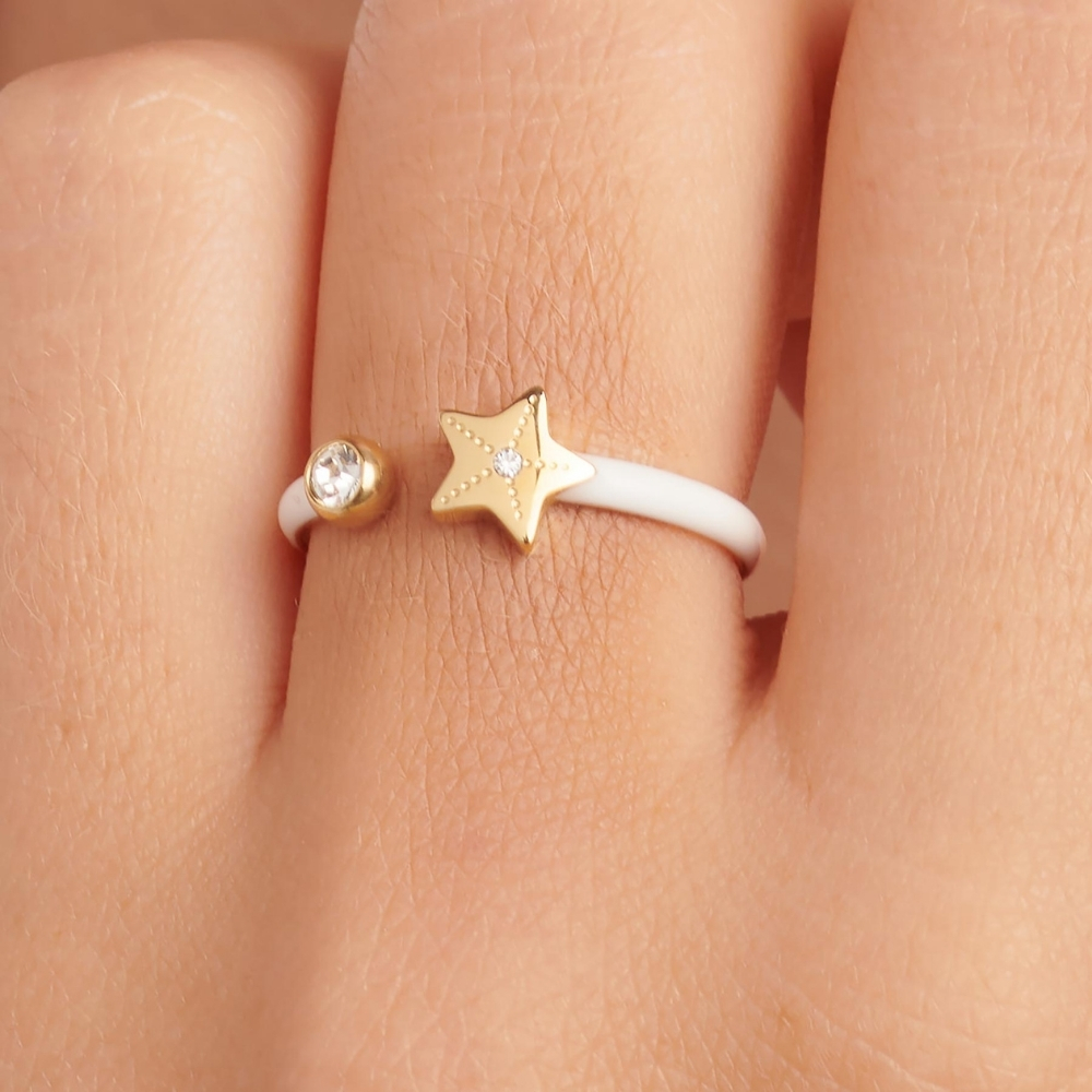 Prsten od hirurškog čelika u žutoj boji sa cirkonom u prozirnoj boji. Prelep i suptilan prsten koji može upotpuniti svaki vaš outfit, bilo dnevni ili večernji.