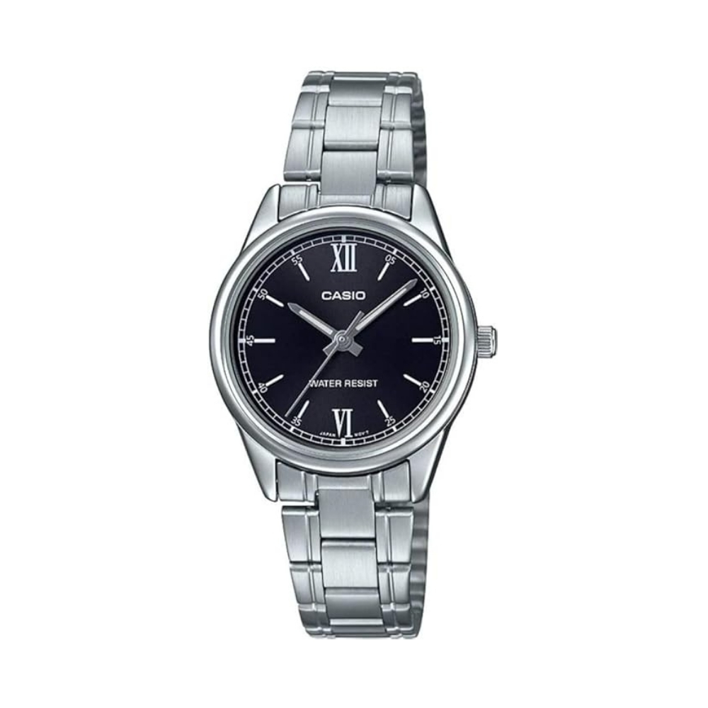 Klasičan ženski sat sa crnim brojčanikom i metalnim finišem, nepogrešiv izbor za minimalistički stil.