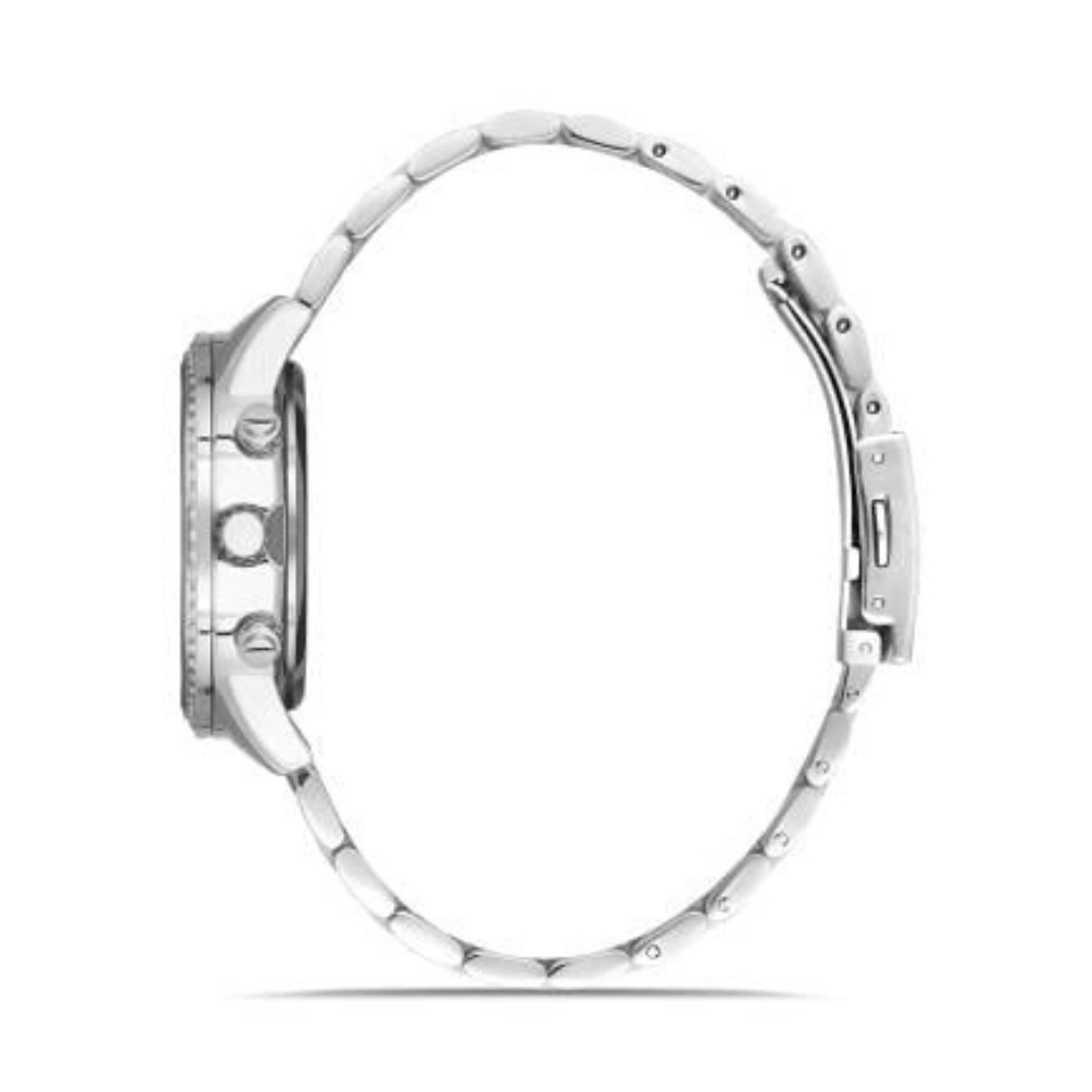 Siva boja, kvarcni mehanizam, nerđajući čelik, mineralno staklo, analogni sat sa modernim dizajnom.
