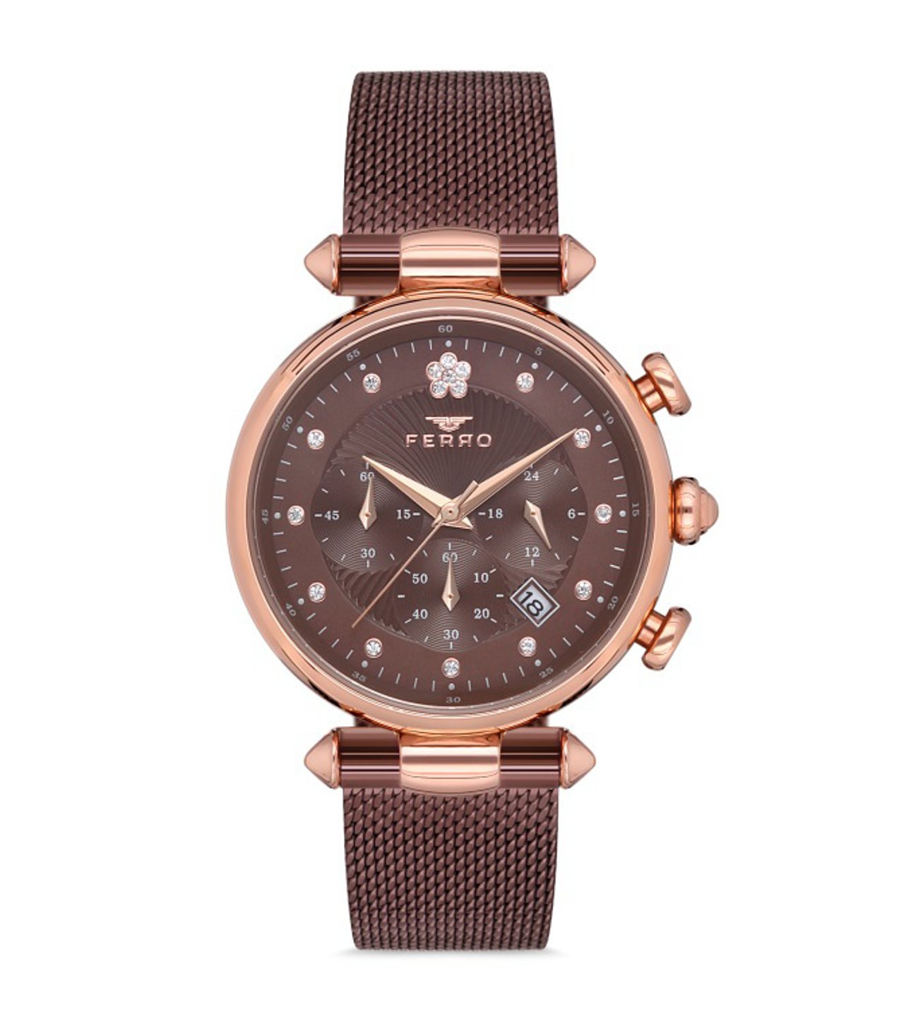 Ferro ženski sat FM41080C-S6 odiše sofisticiranim i modernim stilom. Ističe se elegantnom narukvicom koja se savršeno uklapa sa dizajnom kućišta, dok brojčanik donosi prefinjene detalje koji naglašavaju njegovu ženstvenost.