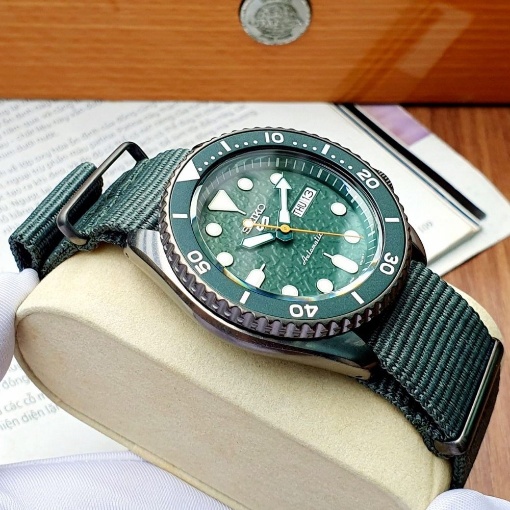 Elegantni model iz kolekcije 5 Sports ima zeleni brojčanik i tekstilnu narukvicu u maslinasto zelenoj boji. Brojčanik je prepoznatljiv za ovu seriju po jakim markerima i indeksima. Lineta u istoj boji je unidirekciona rotirajuća.Kalibar mehanizma 4R36 koji kuca u kućištu sata ima snagu rezerve do 41h. Lako se kombinuje uz svakodnevni stil.