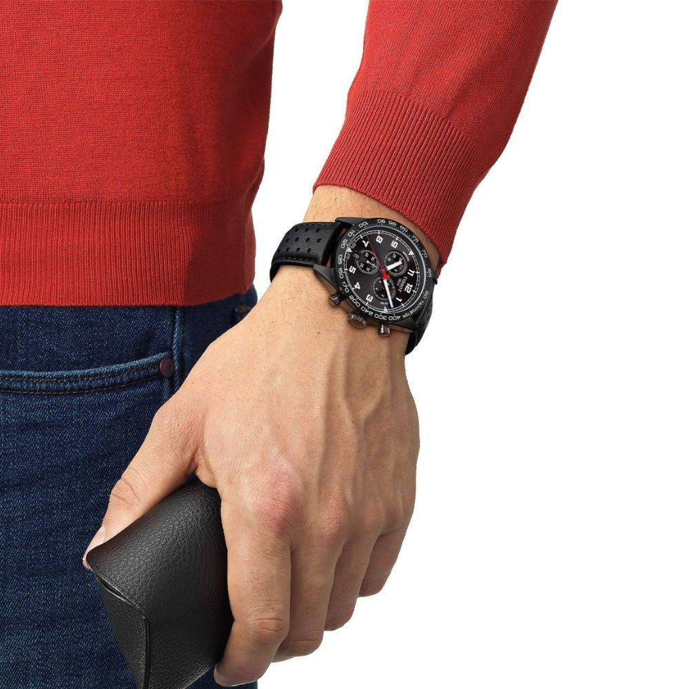 Tissot T131.617.36.052.00 je robustan i moderan muški hronograf iz kolekcije T-Sport, savršen za dinamičan stil života. Sat krasi crni brojčanik sa tri podbrojčanika, jasno izraženim belim markerima i funkcijom datuma, što omogućava odličnu preglednost i funkcionalnost.